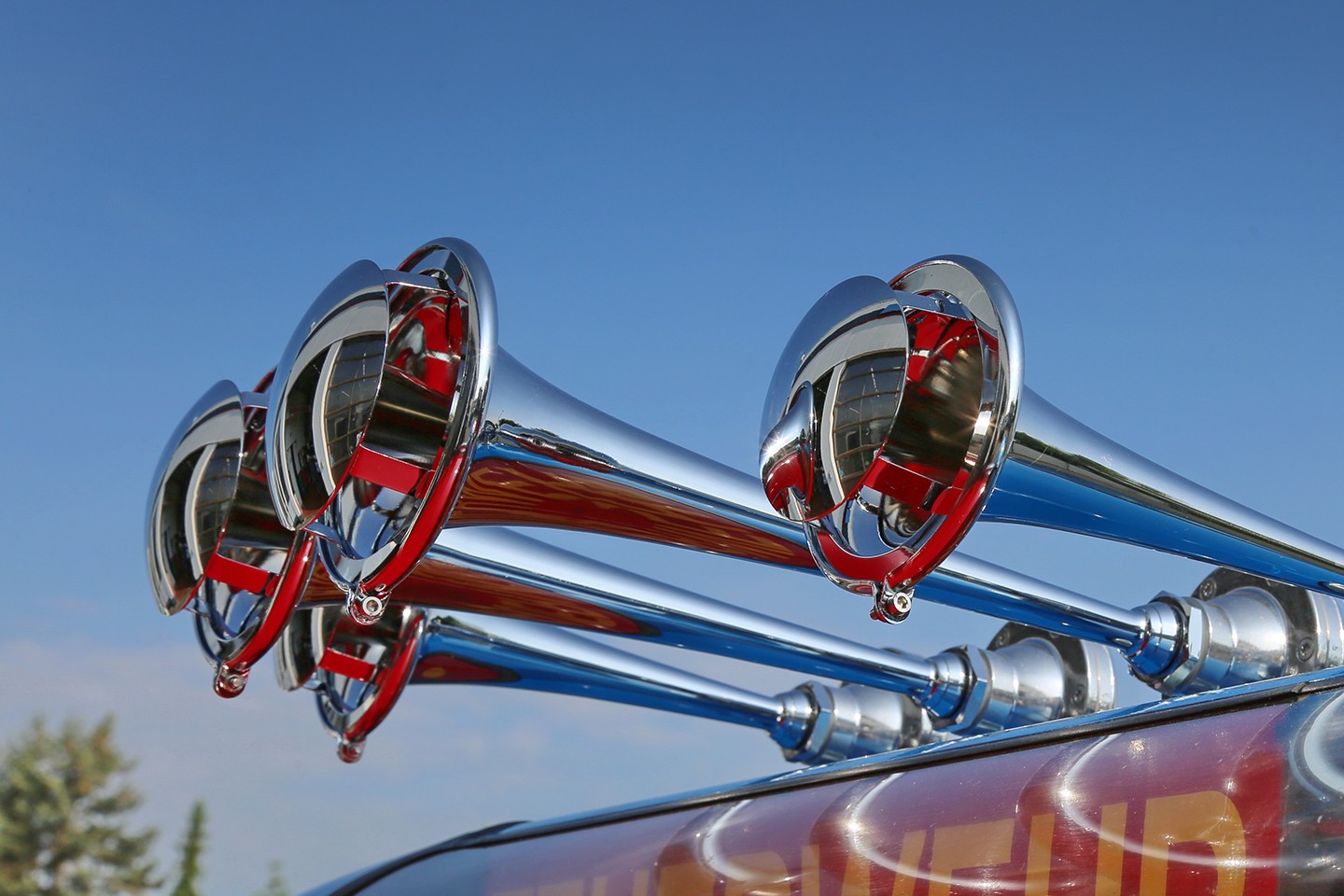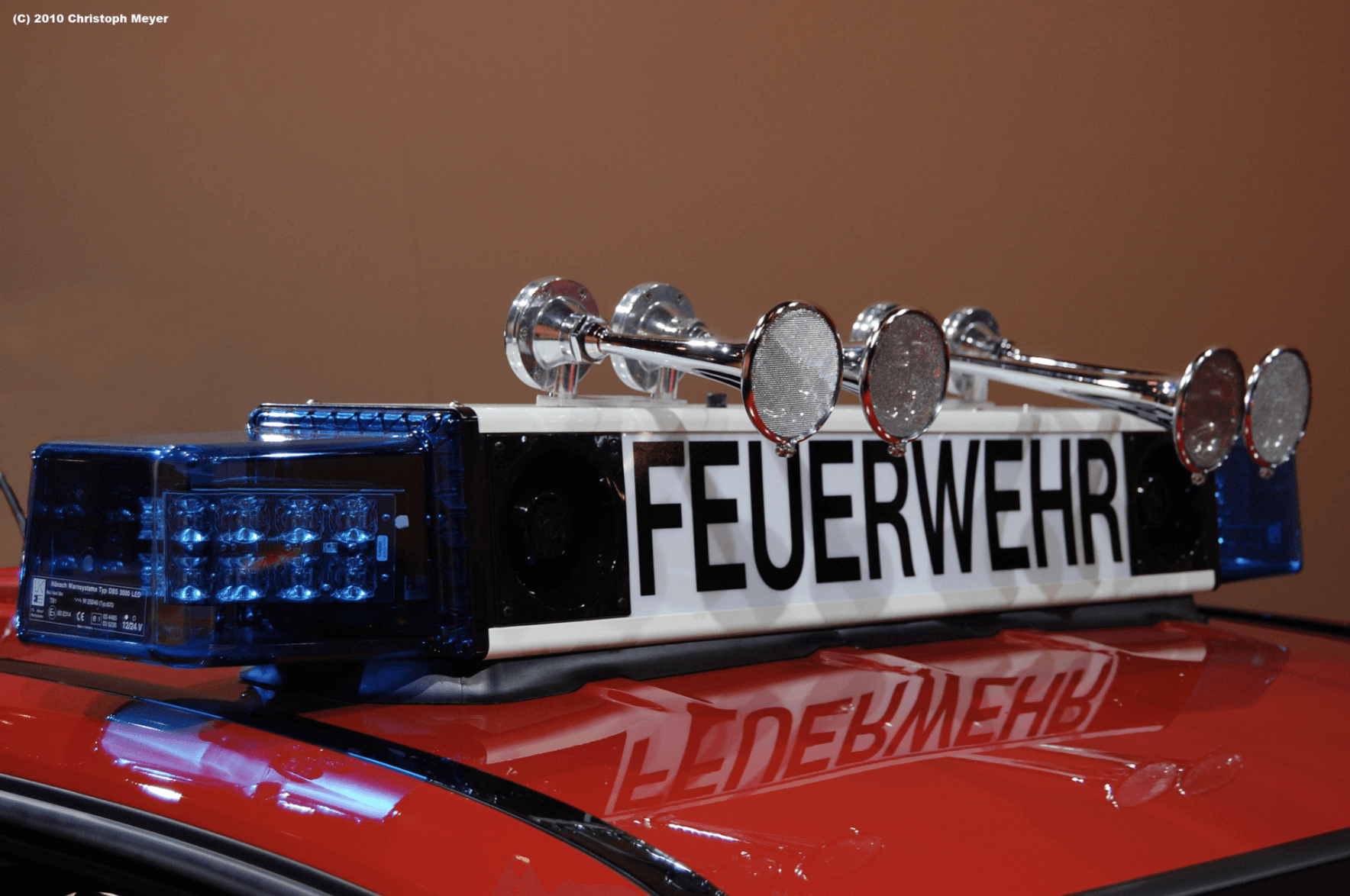 Martinshorn is a registered trademark, originally created in the 1930s as a mechanical siren system that uses compressed air to drive sound through metal trumpets, producing a powerful, trembling tone. The familiar “TA–TÜÜ” sound heard from fire trucks, ambulances, and police cars in Germany is actually defined in the DIN 14610 standard. According to this regulation, the official German emergency signal — known as the Folgetonhorn — must consist of two alternating tones with frequencies between approximately 360 Hz and 630 Hz, separated by a perfect fourth (a frequency ratio of 4:3), the same musical interval often used in fanfares. In common usage, "Martinshorn" refers not only to the original pneumatic version with compressor and metal trumpets still used by fire brigades, but also to modern electronic sirens on most police and ambulance vehicles, which reproduce the same DIN two-tone pattern. The tempo of these electronic sirens can vary — typically faster in cities and slower on highways.